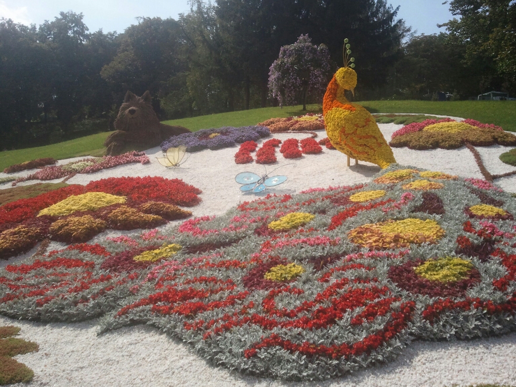 Apparently Kiev is just like the Hunger Games. Such as the city is made of 10 districts. And each district specializes in something different. And each year a young tribute is chosen from each district to compete in a pageant of valor in which they have to fight each other to the death. Just kidding about that last bit. But for reals, every year the districts make a huge flower display and they do a big show of it. I'm not sure which district we saw...it may have been the district that I live in called Nyvky, which actually specializes in flowers. It's like a garden kind of that you walk through and there are little street vendors everywhere kind of like a fair. So our coordinator Oksana took us to see that. It was neeeeat. Let's take a look in pictures, shall we?
